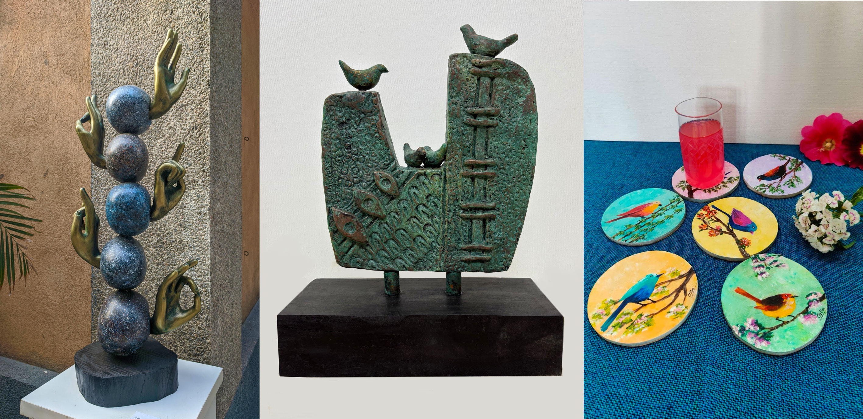She can be found in artist camps and workshops, across the country, honing on, sharing and showcasing her painting and sculpting skills. She holds a Master of Arts in Drawing and Painting from Meerut University, Uttar Pradesh and experiments with clay, metal, acrylic and oil paints as well as water based colours. Through her work, she invites the viewers to create and explore different perspectives and psychologies.