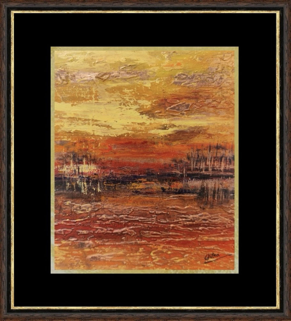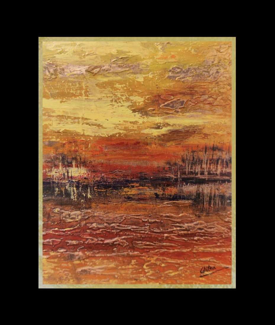 Brown, red, orange, gold, yellow, acrylic painting, Mdf sheet