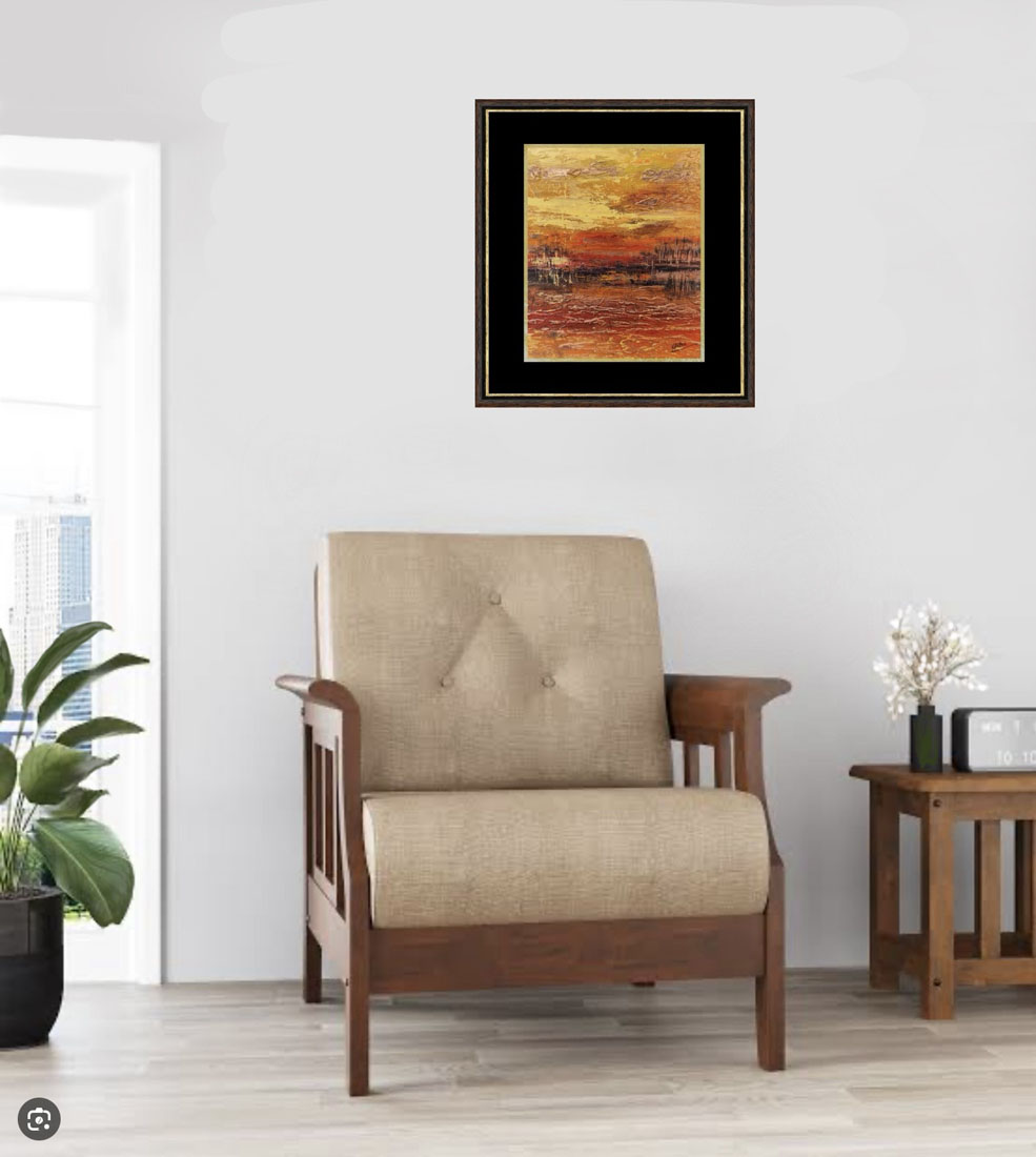 This colourful, yet simple painting can serve both as a focal point or as a complementary piece to your existing decor. This painting is mounted with 2” black paper mount heard sheet with a golden border line. This mount Border is not included in given painting size.