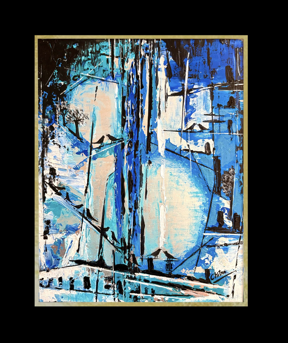 Blue, black, white , acrylic painting, mix media painting, Mdf sheet