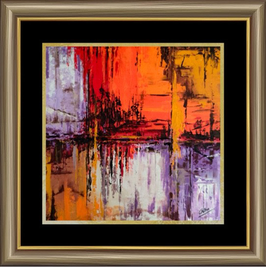 Framed painting for reference only. Actual product will be shipped as rolled canvas sheet with margins for stretching and framing.