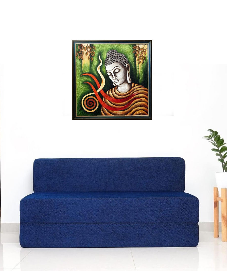 Buddha, green, red, yellow, orange, acrylic, canvas
