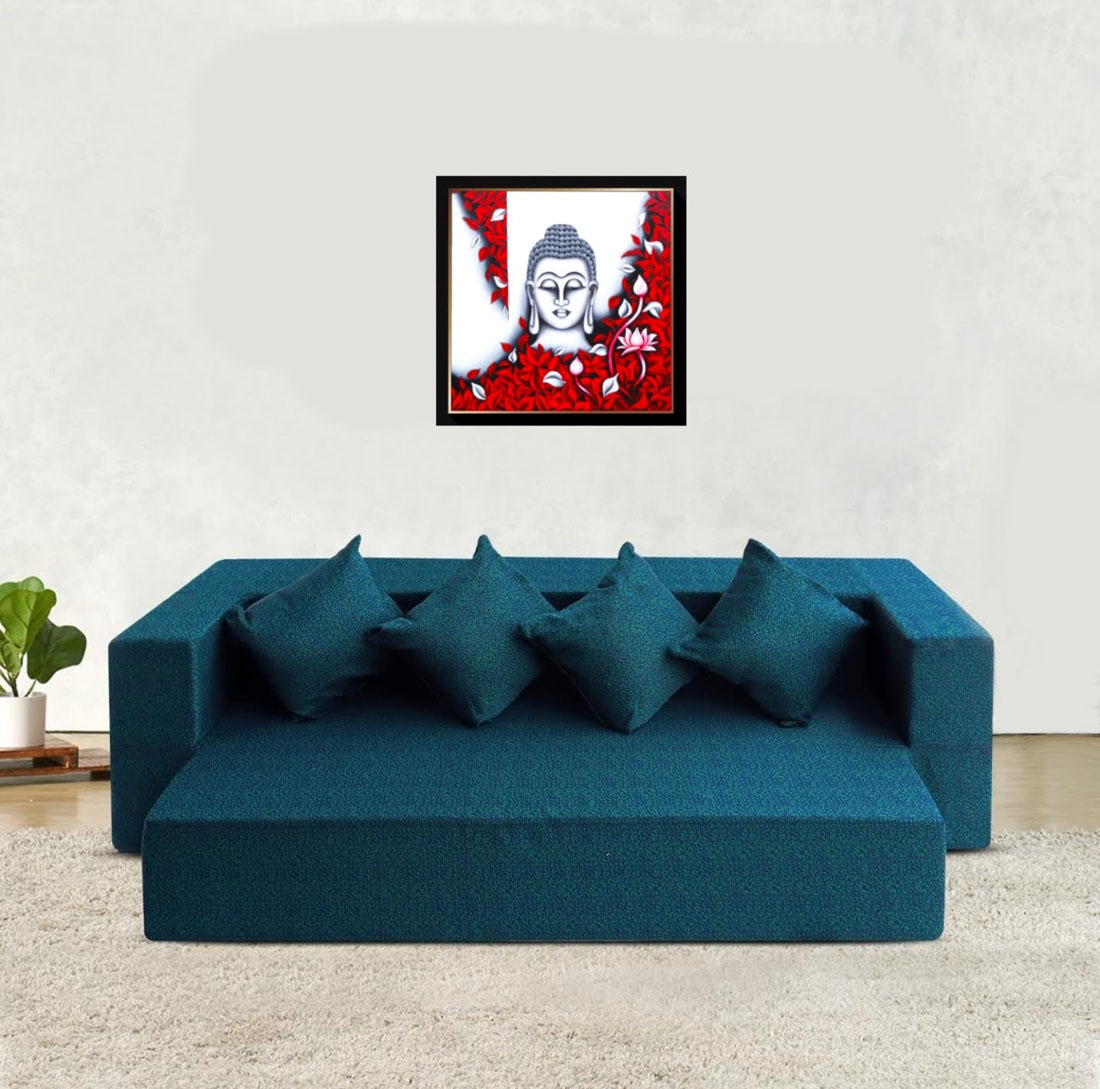 This colourful, yet simple painting can serve both as a focal point or as a complementary piece to your existing decor. Its transient red and white – Gray hue lends itself amicably to both warm and cold tempered surroundings. Painting in warm & cold tones works well in professional and personal settings and may provide an oft needed reminder of Buddhist teachings.