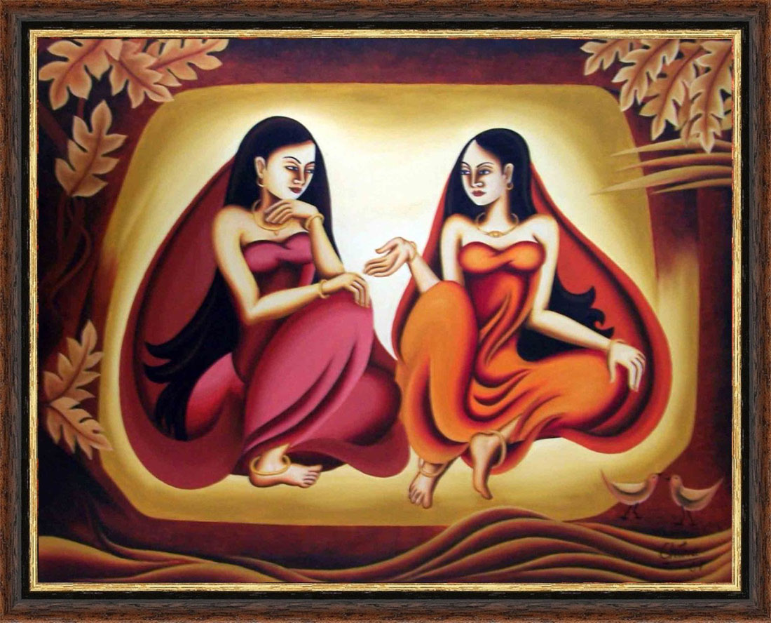 Figurative, Oil, Brown, yellow, Red, canvas.