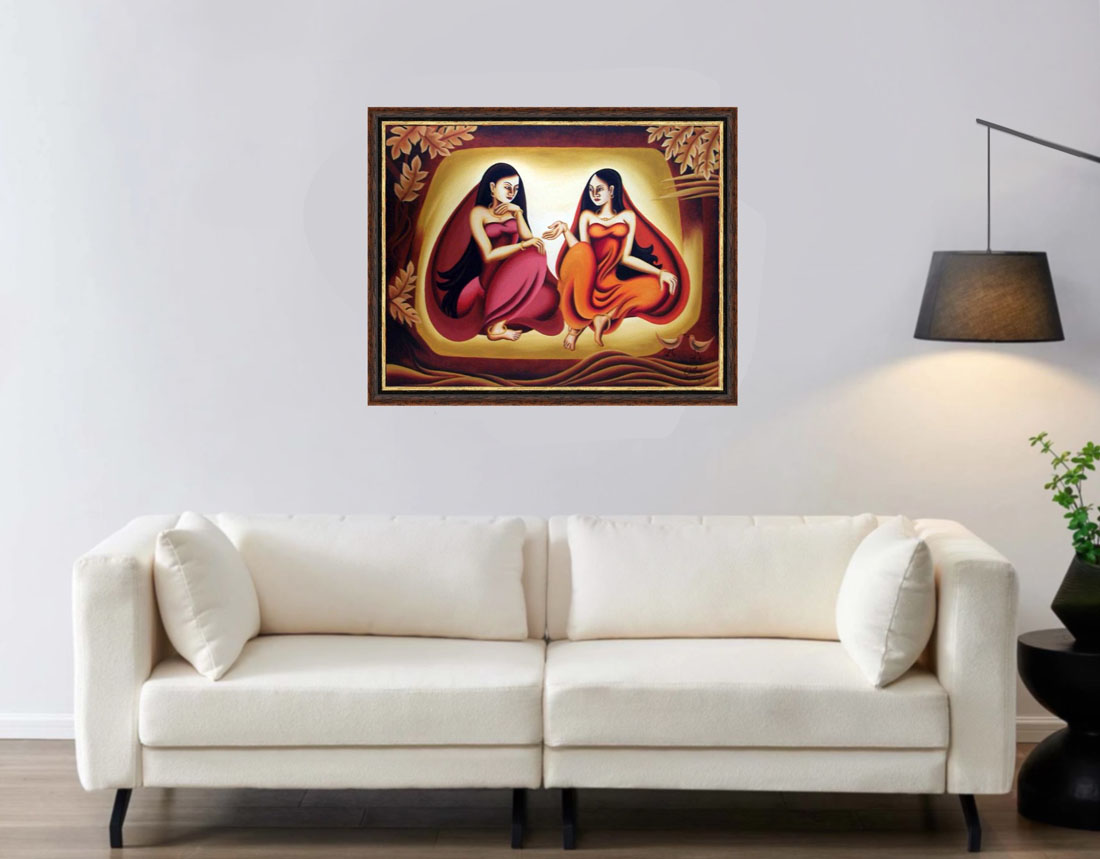 Framed painting for reference only. Actual product will be shipped as rolled canvas sheet with margins for stretching and framing.