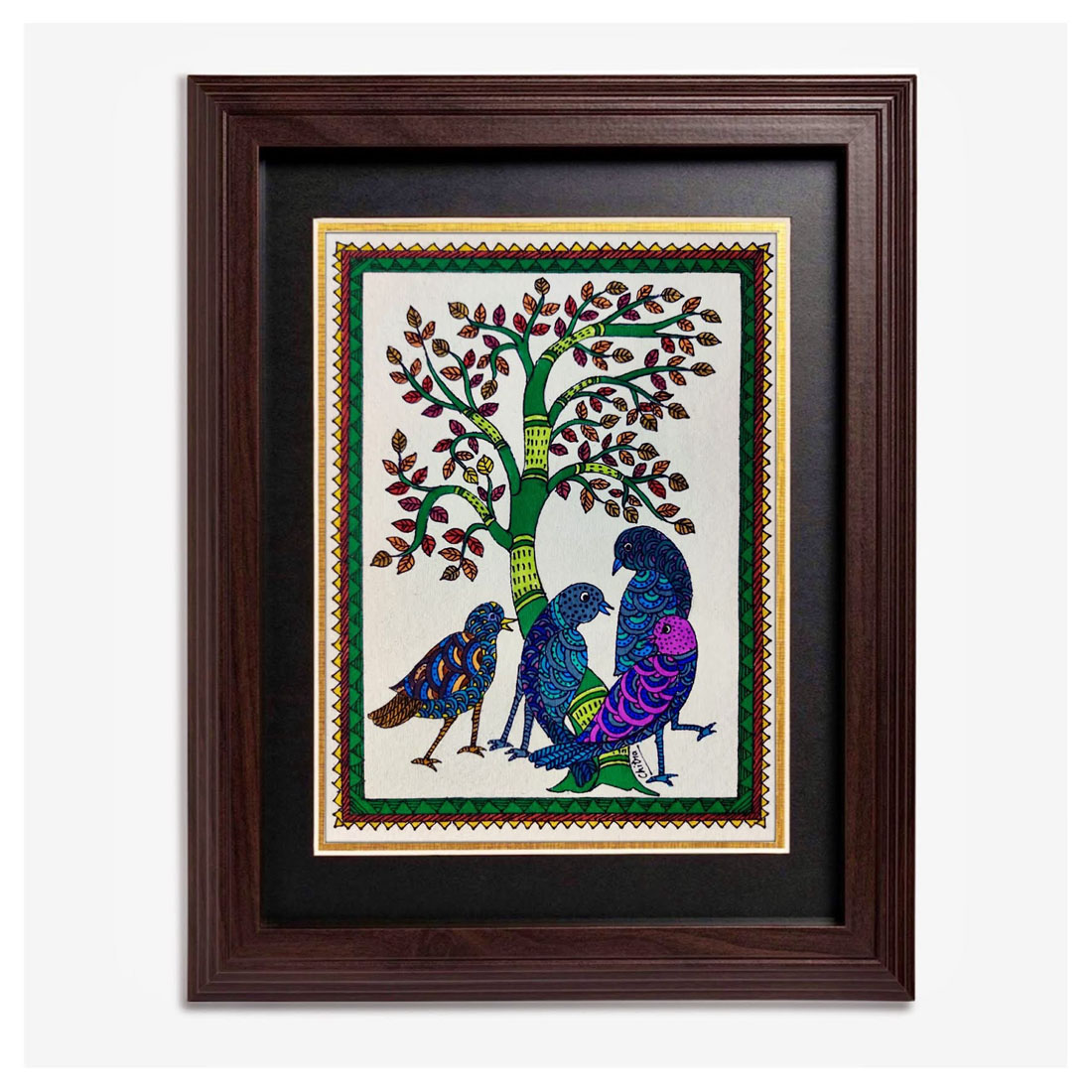 This colourful, yet simple painting can serve both as a focal point or as a complementary piece to your existing decor. This painting is mounted with 2” black paper mount heard sheet. This mount Border is not included in given painting size.