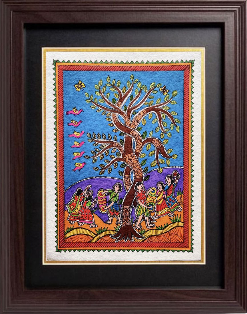 This colourful, yet simple painting can serve both as a focal point or as a complementary piece to your existing decor. This painting is mounted with 2” black paper mount heard sheet. This mount Border is not included in given painting size.