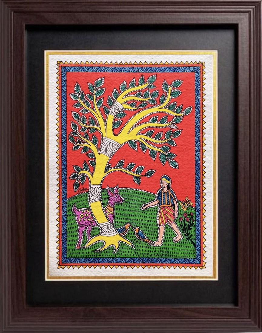 This colourful, yet simple painting can serve both as a focal point or as a complementary piece to your existing decor. This painting is mounted with 2” black paper mount heard sheet. This mount Border is not included in given painting size.