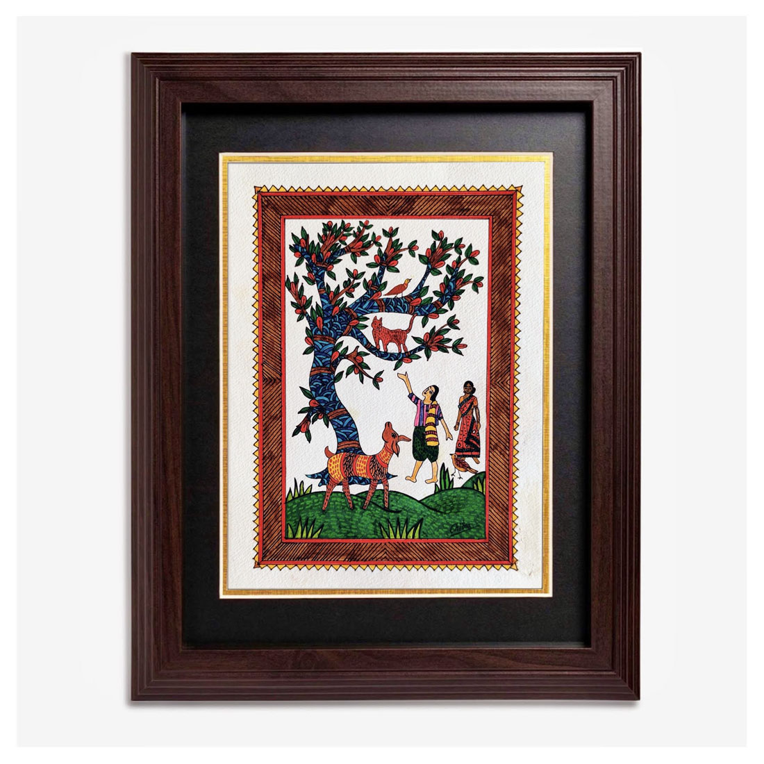 This colourful, yet simple painting can serve both as a focal point or as a complementary piece to your existing decor. This painting is mounted with 2” black paper mount heard sheet. This mount Border is not included in given painting size.