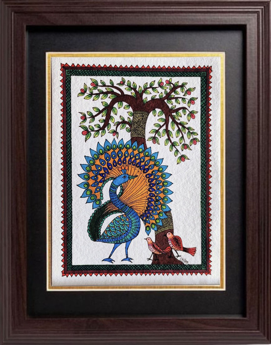This colourful, yet simple painting can serve both as a focal point or as a complementary piece to your existing decor. This painting is mounted with 2” black paper mount heard sheet. This mount Border is not included in given painting size.
