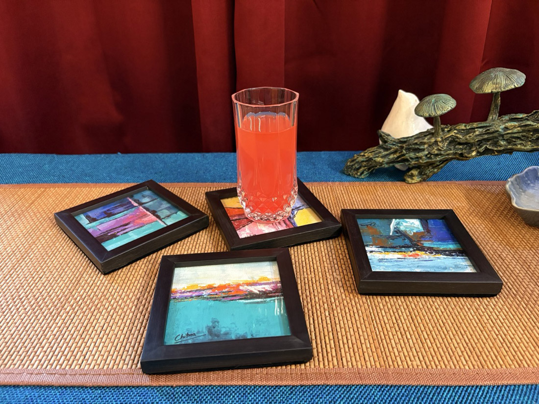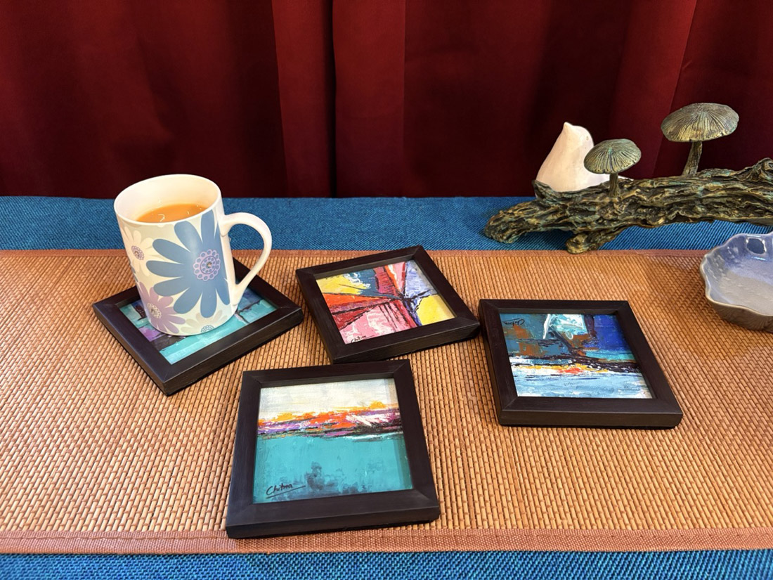 Abstract, Acrylic, Painting, Hand Made, Framed Coasters, Beautiful Coasters, Table Decor; Decorative Coasters, For Office, For Home, Home Decor, Office Decor, Best Birthday Gift, House Warming Gift, Best Diwali Gift, Best Christmas Gift, Divine with Destiny