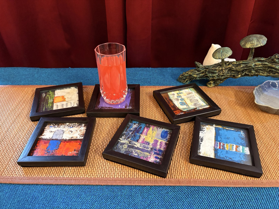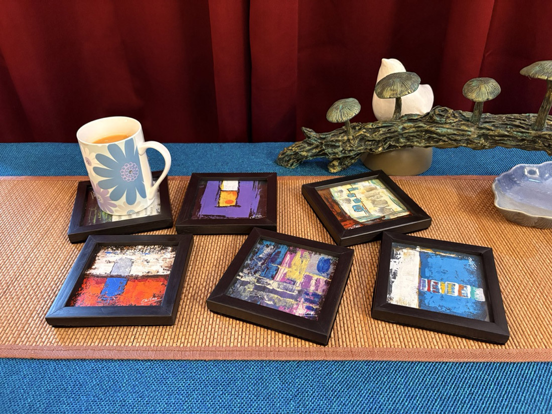 Abstract, Acrylic, Painting, Hand Made, Framed Coasters, Beautiful Coasters, Table Decor; Decorative Coasters, For Office, For Home, Home Decor, Office Decor, Best Birthday Gift, House Warming Gift, Best Diwali Gift, Best Christmas Gift, Divine with Destiny