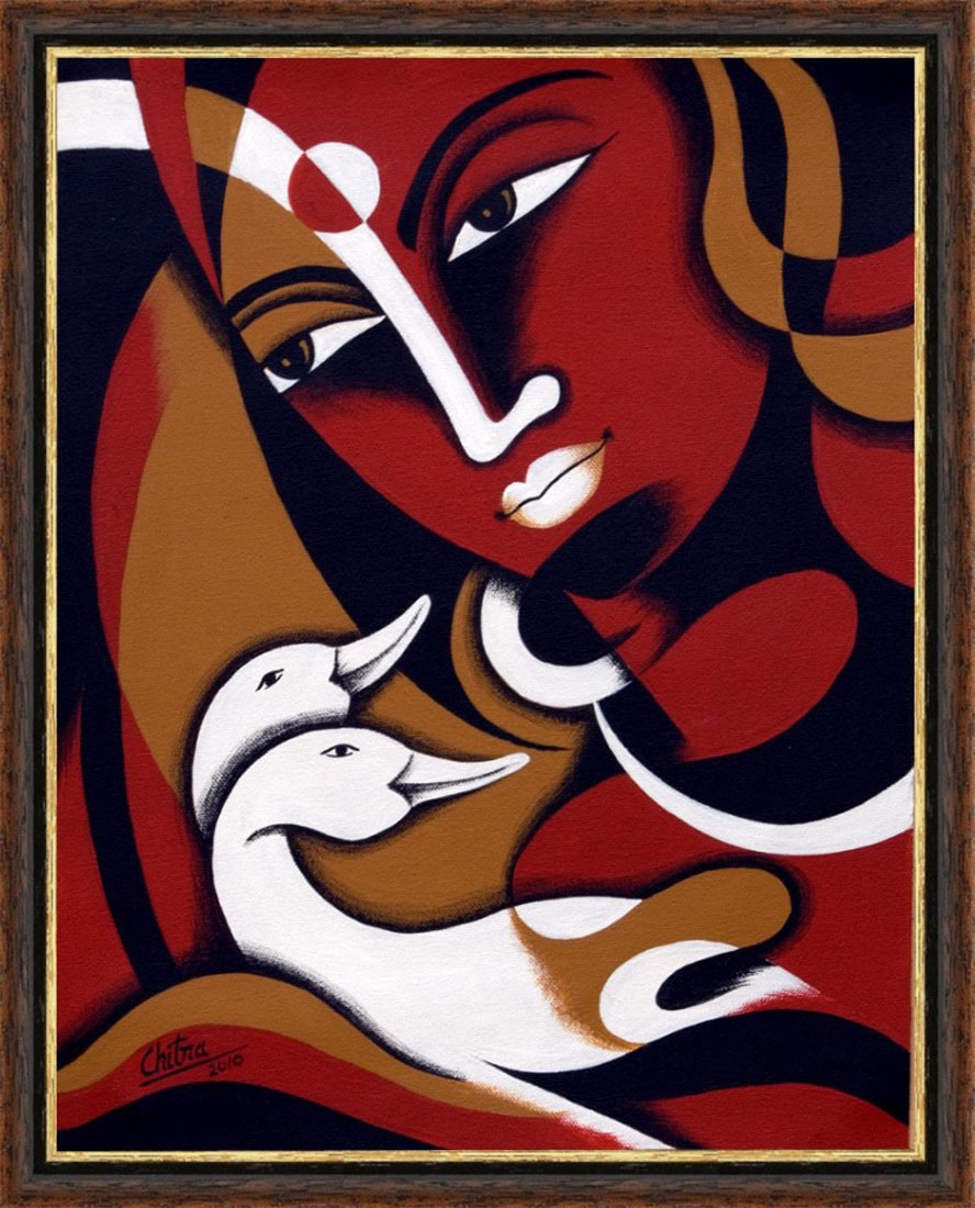 Figurative, brown, yellow, red, white, black, Acrylic painting , canvas painting