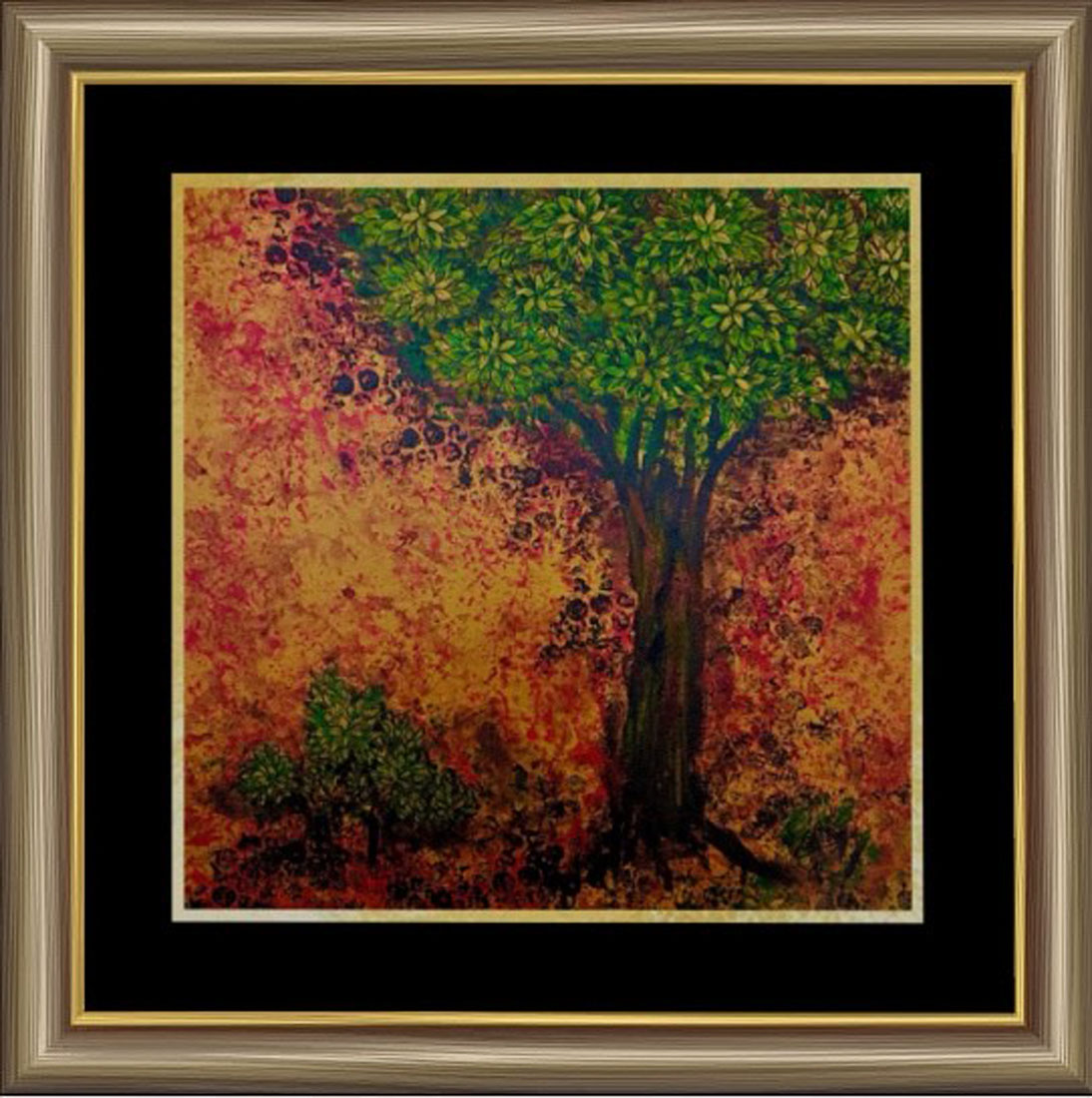 Framed painting for reference only. Actual product will be shipped as rolled canvas sheet with margins for stretching and framing.