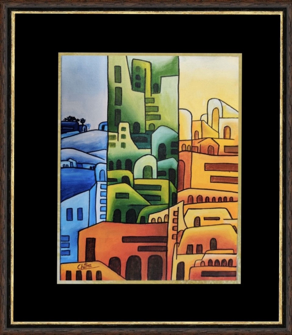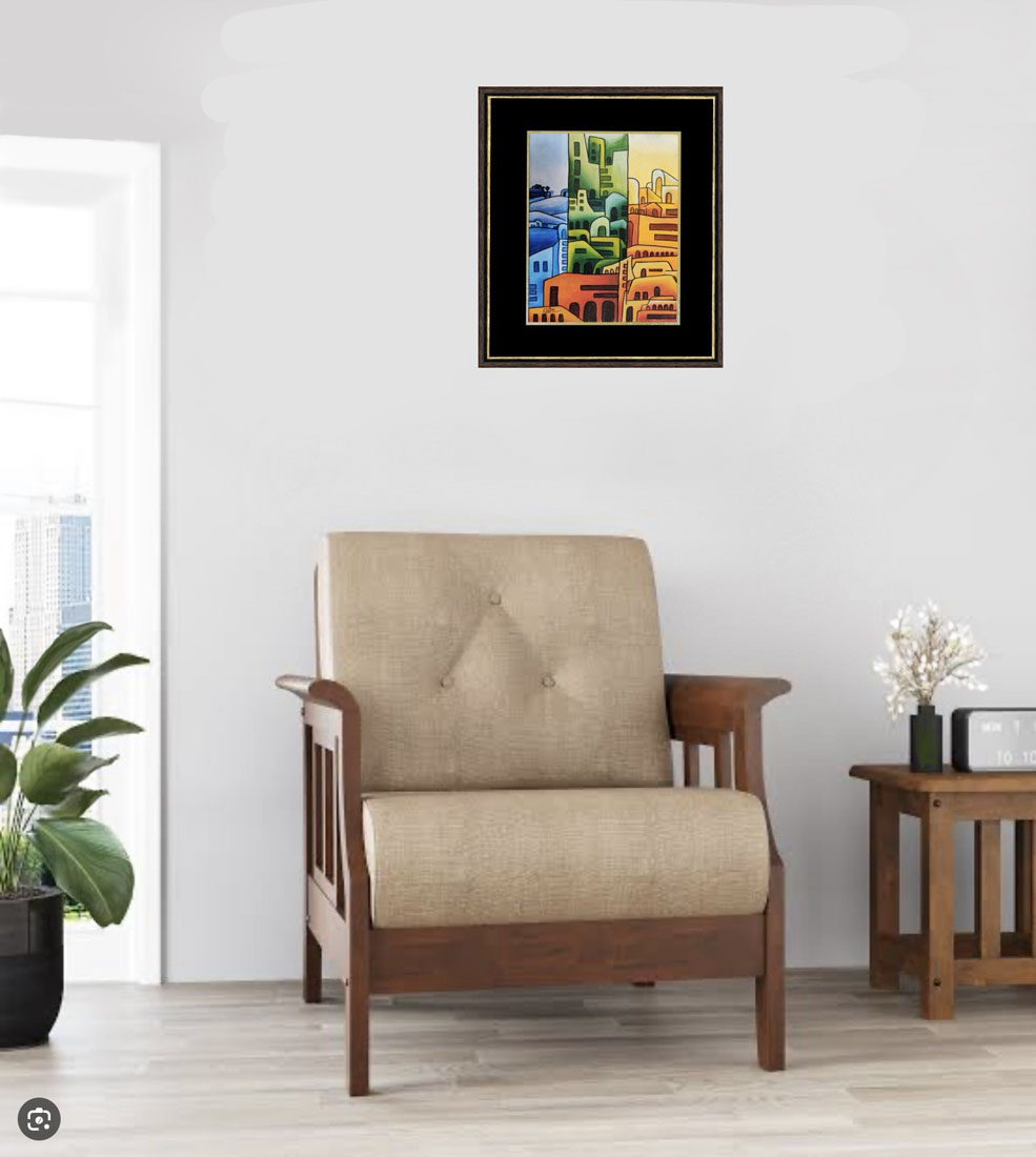 This colourful, yet simple painting can serve both as a focal point or as a complementary piece to your existing decor. This painting is mounted with 2” black paper mount heard sheet with a golden border line. This mount Border is not included in given painting size.