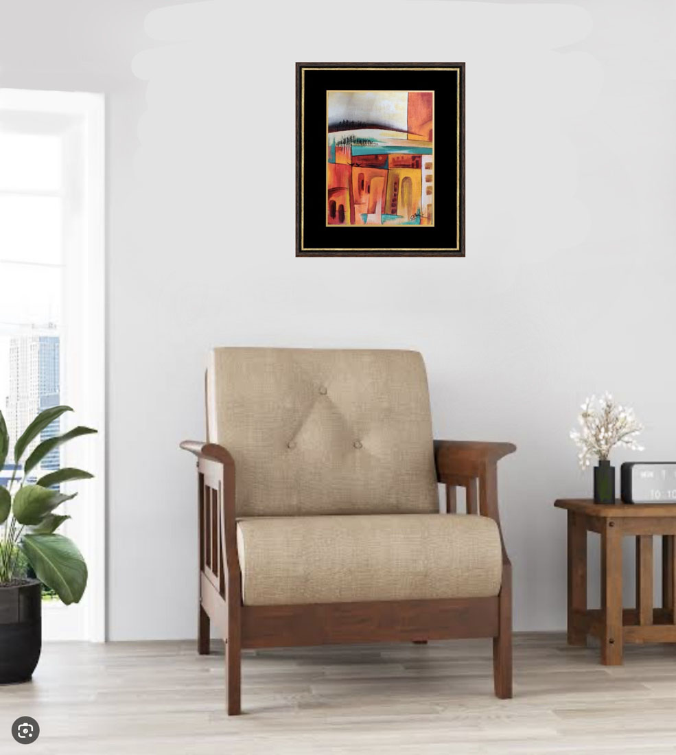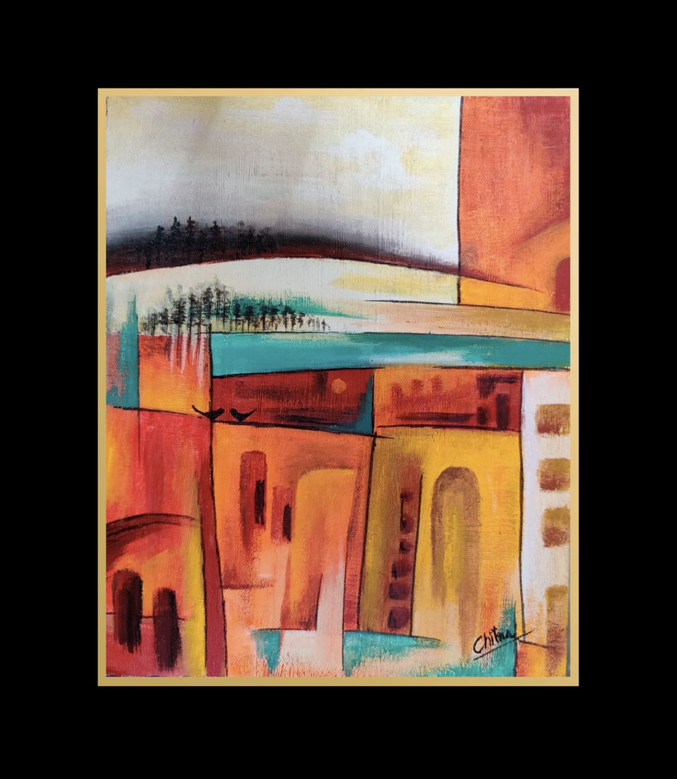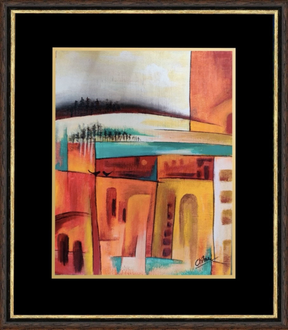 This colourful, yet simple painting can serve both as a focal point or as a complementary piece to your existing decor. This painting is mounted with 2” black paper mount heard sheet with a golden border line. This mount Border is not included in given painting size.