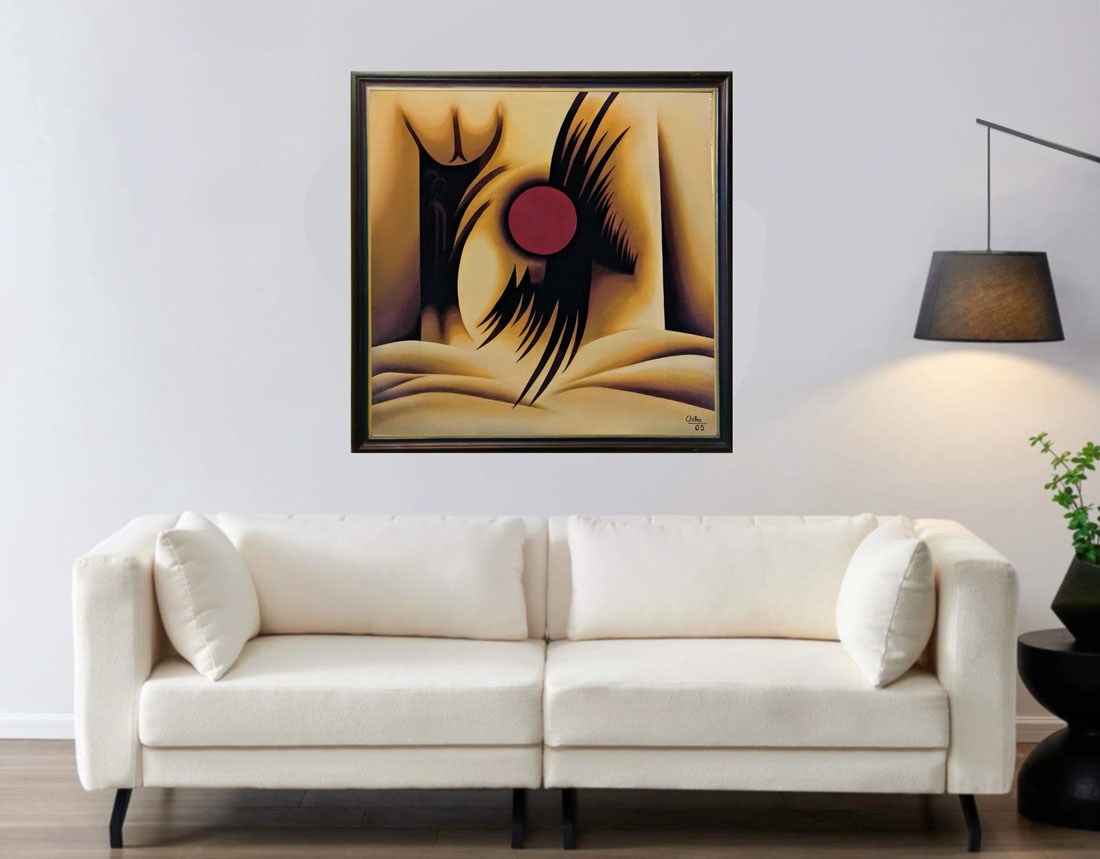 Framed painting for reference only. Actual product will be shipped as rolled canvas sheet with margins for stretching and framing.